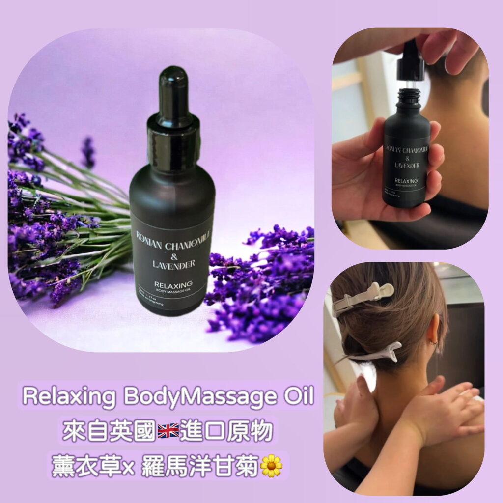 身心療癒的天然按摩油,以薰衣草結合羅馬洋甘菊,鎮靜心靈,平靜減壓緩解精神壓力、有效改善失眠及頭痛等問題,過程中享受到愉悅的香氣。配上香薰能放鬆大腦神經功效,再配合按摩紓緩緊繃的肌肉組織,令您由內外釋放出生髮活力。